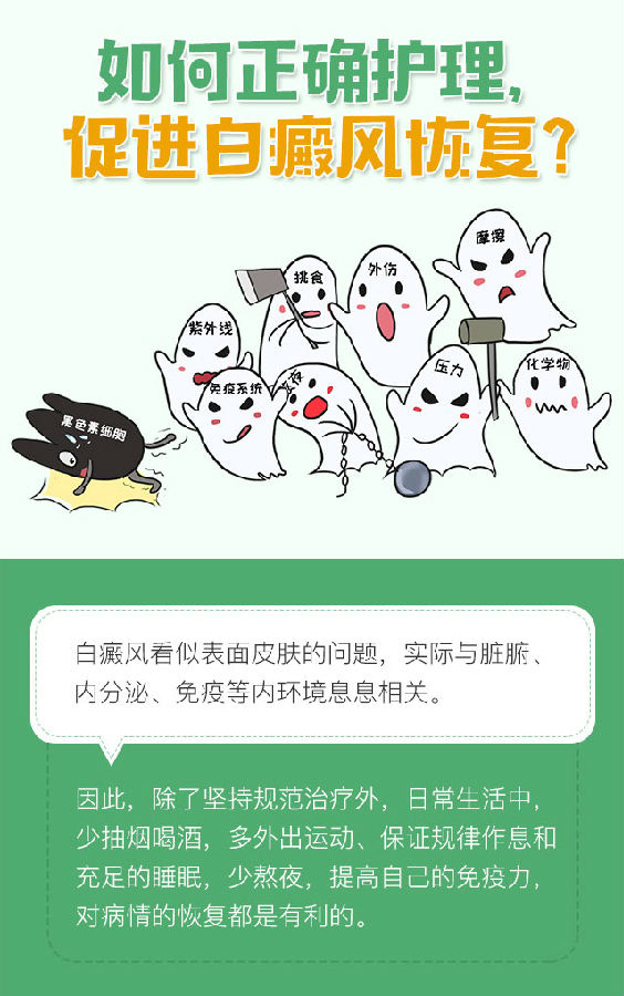 白癜风也和患者的心理有关。长期的心理压力或长期的心理压抑和厌倦都会导致白癜风的发生。而且不健康的心理状态对疾病的恢复有影响,所以对患者进行心理方面的护理也很重要。通过培养一些爱好和兴趣,我们可以把注意力转移到疾病上,改善我们的情绪。