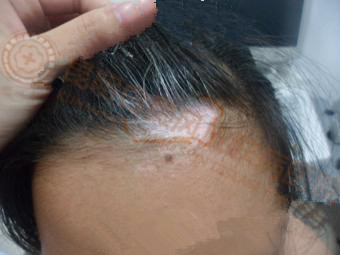 ▲现 病 史:额头发际中央部位白斑,特来院就诊。