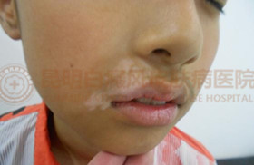 ▲现 病 史:右侧嘴角片状白斑,发展较快,在外四处求医,效果不佳,今日特来我院就诊。