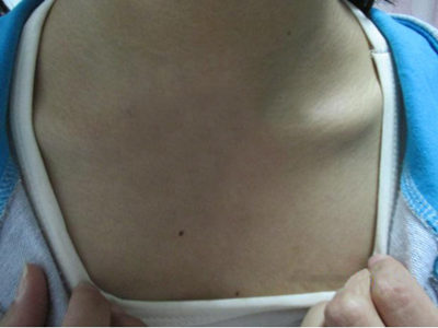 病史:患者两年前发现胸部出现白斑,白斑逐渐增大,曾在外院治疗过(具体不详),治疗效果不佳,遂今日来小莉院就诊。