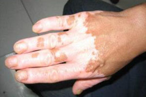 5、斑驳病:本病为先天性遗传性皮肤病,如何治疗白癜风?具特征的是发生在额部中央或稍偏部位三角形或菱形白斑,并伴有横跨发际的局限性白发。斑驳病亦可伴发其他畸形,如虹膜异常、聋哑、精神发育异常、兔唇、耳、齿畸形等。