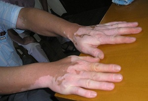 2、过量的光照:皮肤在接受光照时,黑色素细胞及黑色素合成过程就会相对活跃,因此光照能够使人变黑,但是在接受过量的光照后,紫外线很可能会使得黑色素细胞亢进,出现代偿性增殖的状况,终的结果是黑色素细胞迅速衰亡,黑色素合成中断,出现白斑。