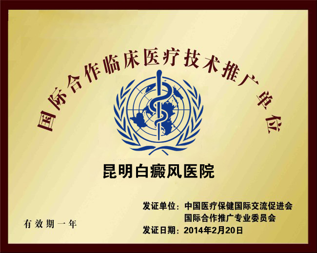 我院自建院以来,一直致力于白癜风疾病的临床科研与诊疗工作,大力拓展与国内外各类科研、诊疗、学术单位的交流与合作。并于2014年2月20日,被中国医疗保健交流促进会、合作推广专业委员会授予“合作临床医疗技术推广单位”。